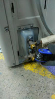 エアコンを運転したまま、室外機の送り側バルブ(細いほうの銅管パイプ)を六角レンチ等を使って閉めます。これでフロンガスを室内機への送り込みを停止します。