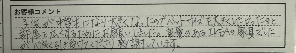 🛌🏻 システムベッド解体処分についてお客様より感謝のお言葉を頂きました!🛌🏻