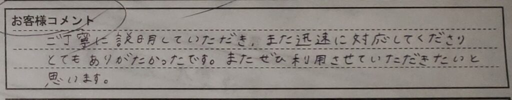 「ご丁寧に説明していただき、また迅速に対応してくださりとてもありがたかったです。またぜひ利用させていただきたいと思います。」
